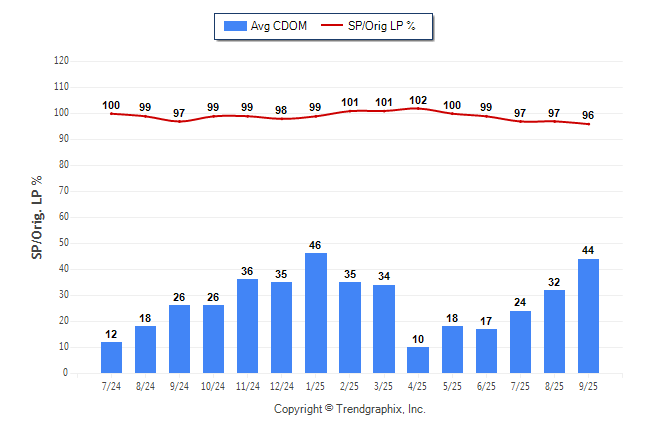 September 2025 Average Continuous Days on Market trend was Rising and Sold/Original List Price Ratio was Falling**