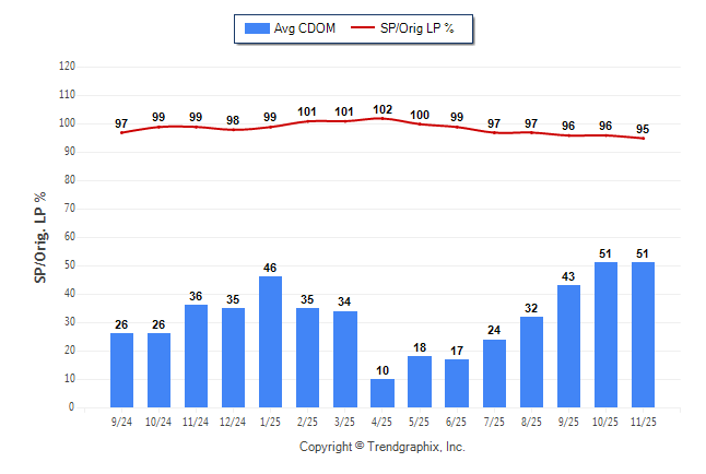 November 2025 Average Continuous Days on Market trend was Rising and Sold/Original List Price Ratio was Falling**