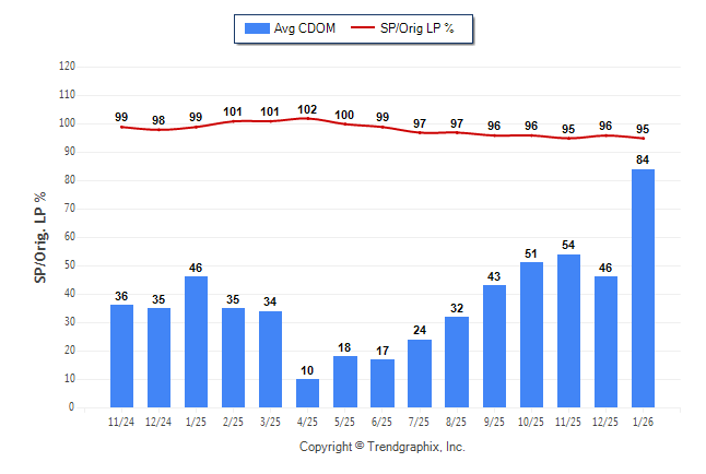 January 2026 Average Continuous Days on Market trend was Rising and Sold/Original List Price Ratio was Falling**
