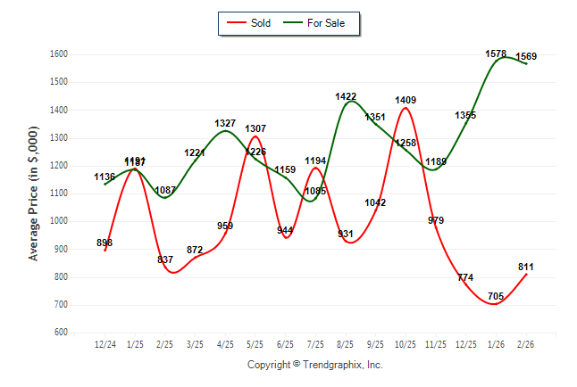 February 2026 Average For Sale Price was Neutral and Average Sold Price was Neutral**