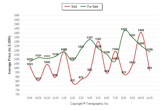 November 2025 Average For Sale Price was Neutral and Average Sold Price was Neutral**