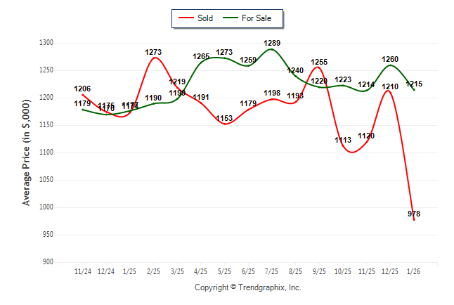 January 2026 Average For Sale Price was Neutral and Average Sold Price was Depreciating**