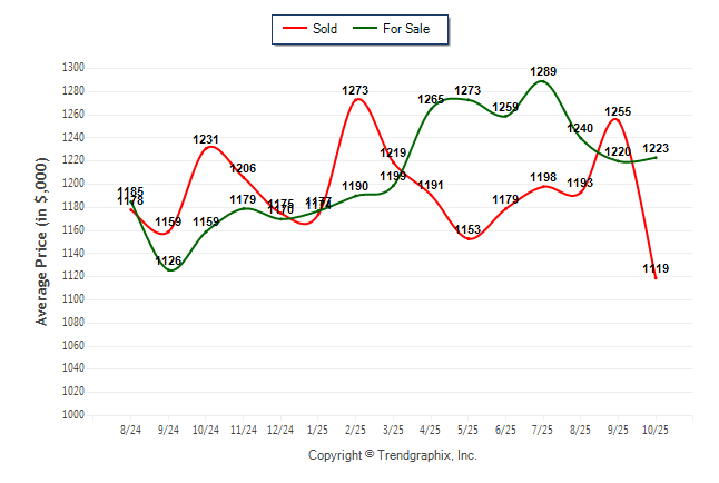 October 2025 Average For Sale Price was Neutral and Average Sold Price was Neutral**