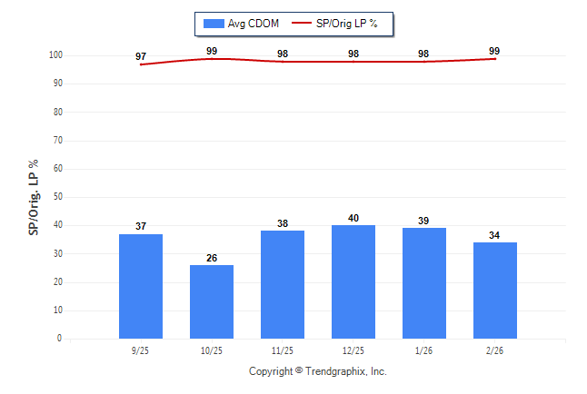 February 2026 Average Continuous Days on Market trend Remains Steady and Sold/Original List Price Ratio Remains Steady**