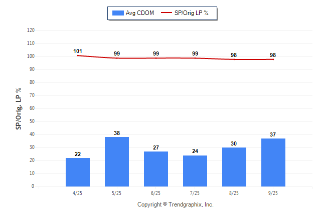 September 2025 Average Continuous Days on Market trend was Rising and Sold/Original List Price Ratio was Falling**
