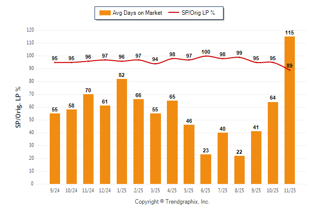 November 2025 Average Days on Market trend was Rising and Sold/Original List Price Ratio was Falling**