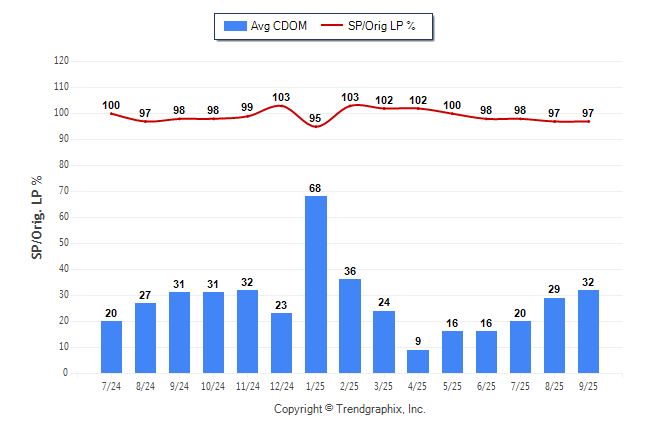 September 2025 Average Continuous Days on Market trend was Rising and Sold/Original List Price Ratio was Falling**