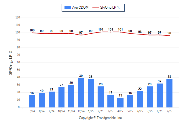 September 2025 Average Continuous Days on Market trend was Rising and Sold/Original List Price Ratio was Falling**