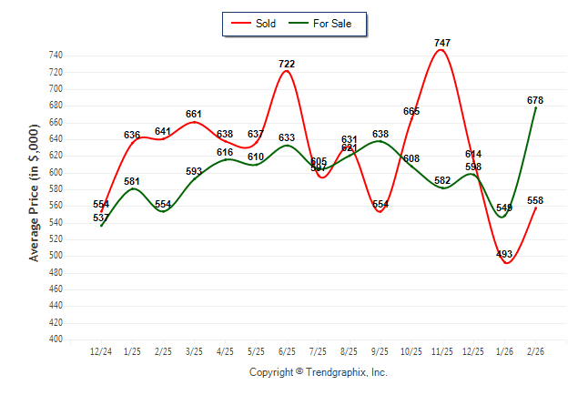 February 2026 Average For Sale Price was Appreciating and Average Sold Price was Neutral**