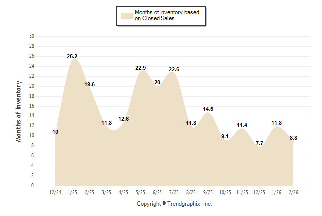 Curnt vs. Same Month 1 Yr Ago: Months of Inventory (Closed Sales)