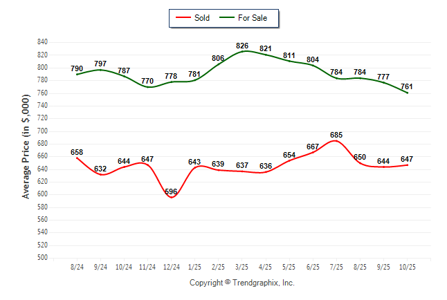 October 2025 Average For Sale Price was Depreciating and Average Sold Price was Neutral**