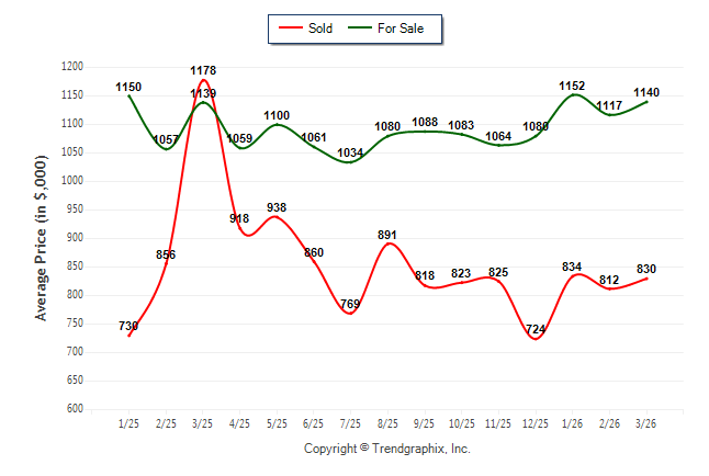 March 2026 Average For Sale Price was Neutral and Average Sold Price was Neutral**
