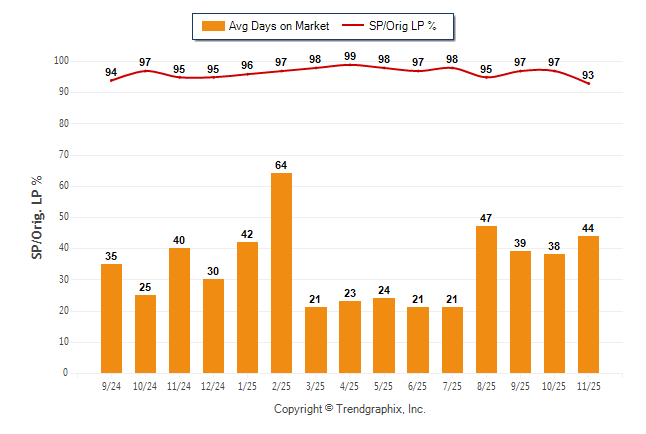 November 2025 Average Days on Market trend was Rising and Sold/Original List Price Ratio Remains Steady**