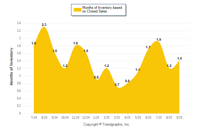 Curnt vs. Same Month 1 Yr Ago: Months of Inventory (Closed Sales)