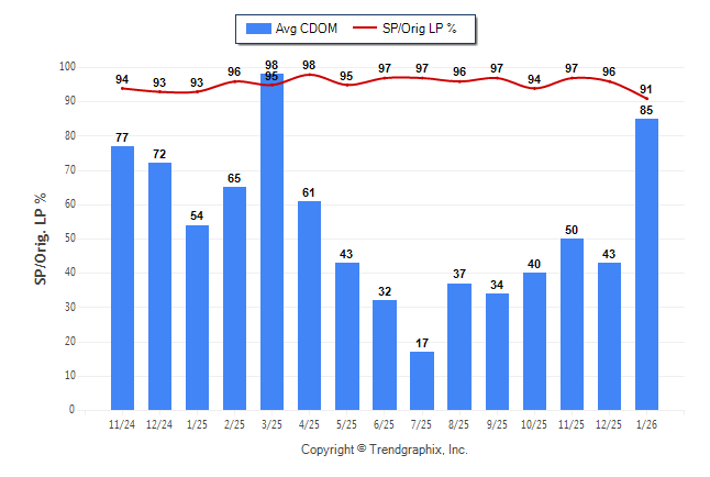 January 2026 Average Continuous Days on Market trend was Rising and Sold/Original List Price Ratio was Falling**