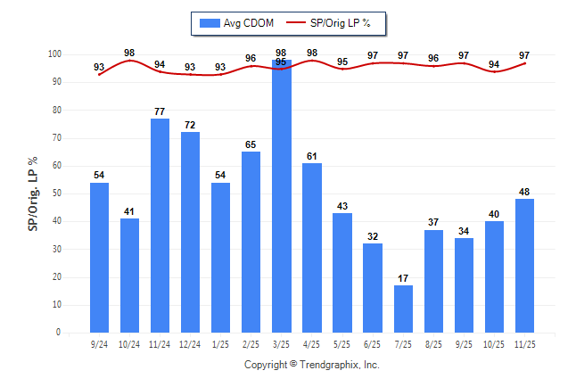 November 2025 Average Continuous Days on Market trend was Rising and Sold/Original List Price Ratio Remains Steady**
