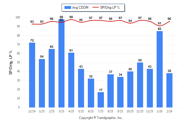 February 2026 Average Continuous Days on Market trend Remains Steady and Sold/Original List Price Ratio Remains Steady**