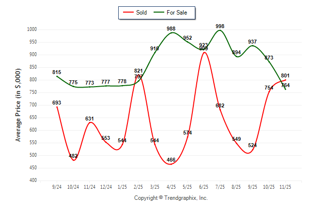 November 2025 Average For Sale Price was Depreciating and Average Sold Price was Appreciating**