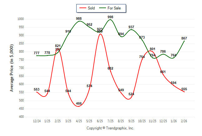 February 2026 Average For Sale Price was Neutral and Average Sold Price was Depreciating**