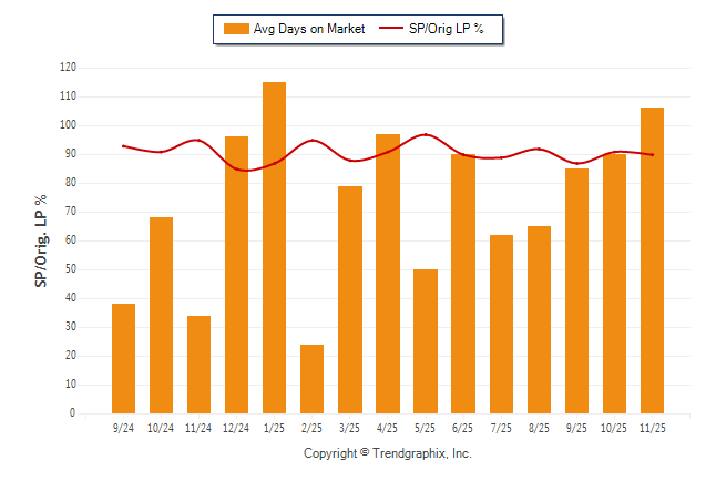November 2025 Average Days on Market trend was Rising and Sold/Original List Price Ratio Remains Steady**