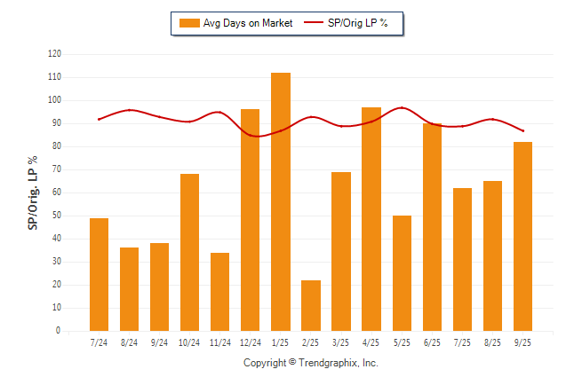 September 2025 Average Days on Market trend Remains Steady and Sold/Original List Price Ratio was Falling**