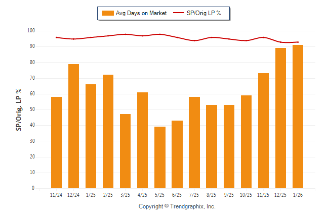 January 2026 Average Days on Market trend was Rising and Sold/Original List Price Ratio was Falling**