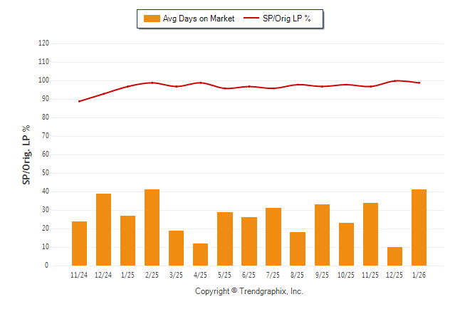 January 2026 Average Days on Market trend was Rising and Sold/Original List Price Ratio Remains Steady**