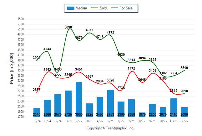 December 2025 Median Price was Neutral, Avg. For Sale Price was Neutral, and Avg. Sold Price was Depreciating**