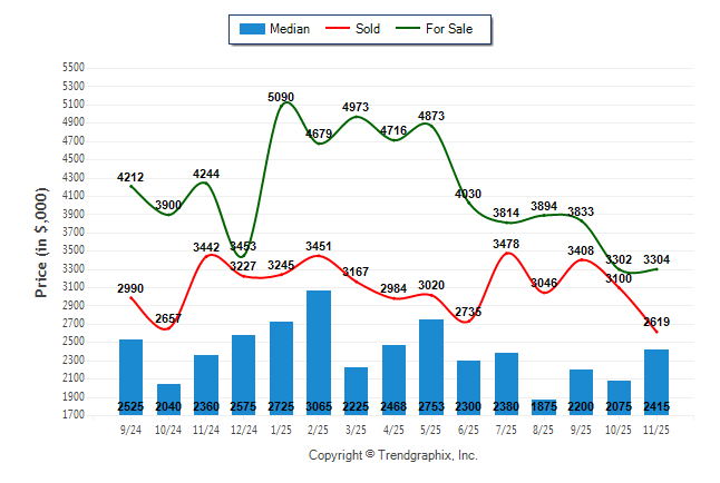 November 2025 Median Price was Neutral, Avg. For Sale Price was Neutral, and Avg. Sold Price was Neutral**