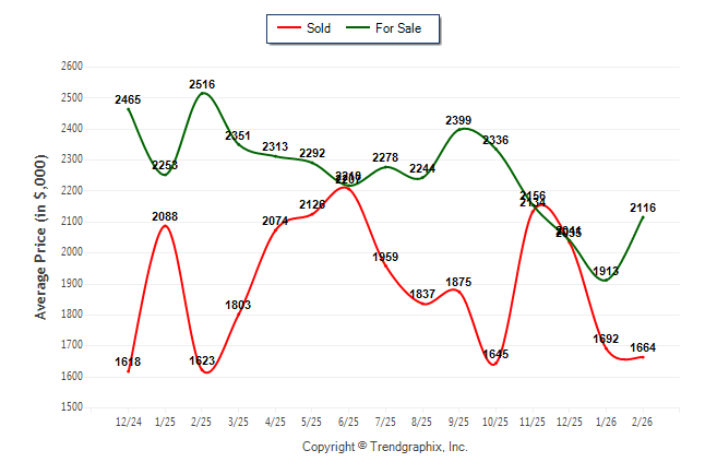 February 2026 Average For Sale Price was Neutral and Average Sold Price was Neutral**
