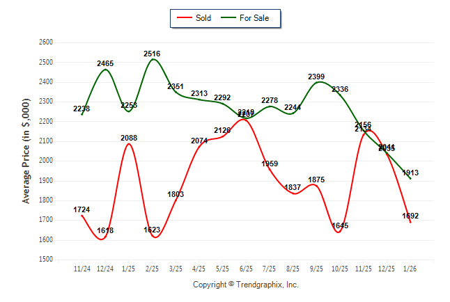 January 2026 Average For Sale Price was Depreciating and Average Sold Price was Neutral**