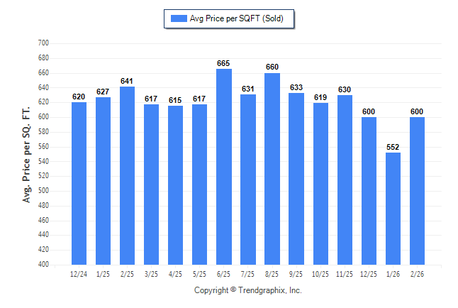 February 2026 Average Sold Price per Square Footage was Neutral**