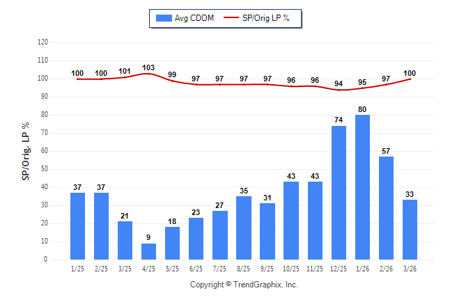 March 2026 Average Continuous Days on Market trend Remains Steady and Sold/Original List Price Ratio was Rising**
