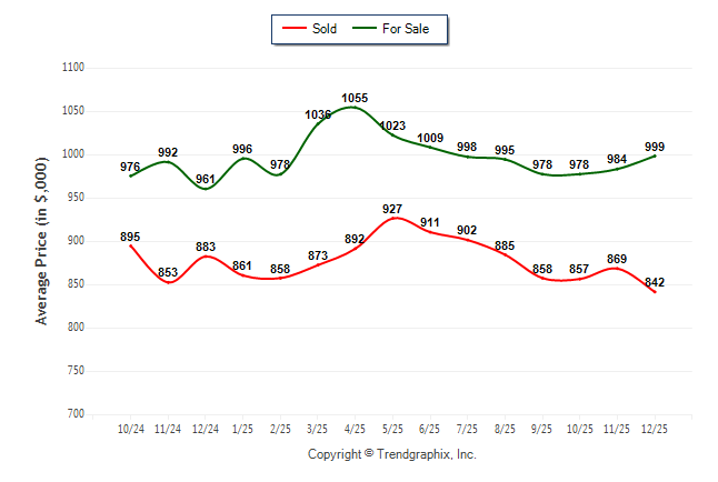 December 2025 Average For Sale Price was Neutral and Average Sold Price was Depreciating**