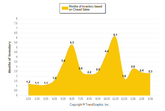 Curnt vs. Same Month 1 Yr Ago: Months of Inventory (Closed Sales)
