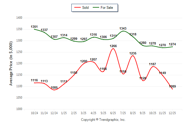 December 2025 Average For Sale Price was Neutral and Average Sold Price was Depreciating**