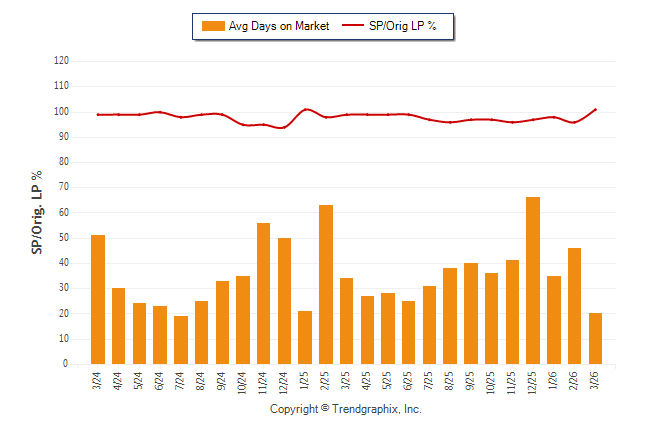 March 2026 Average Days on Market trend was Falling and Sold/Original List Price Ratio was Rising**
