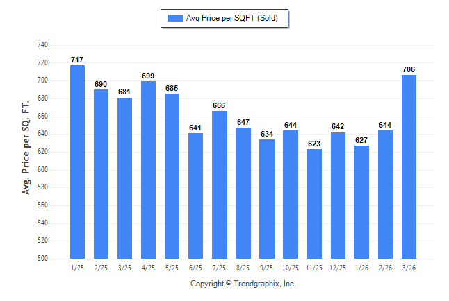 March 2026 Average Sold Price per Square Footage was Appreciating**