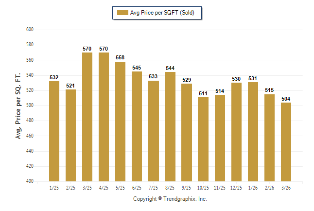 March 2026 Average Sold Price per Square Footage was Depreciating**