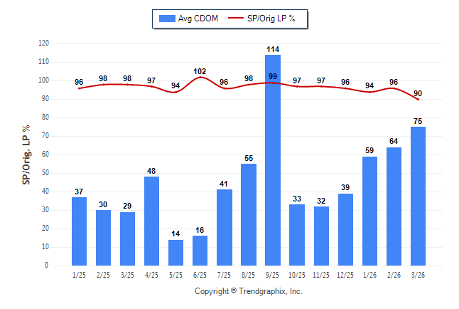 March 2026 Average Continuous Days on Market trend was Rising and Sold/Original List Price Ratio was Falling**