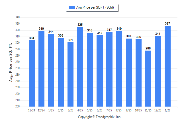 January 2026 Average Sold Price per Square Footage was Neutral**
