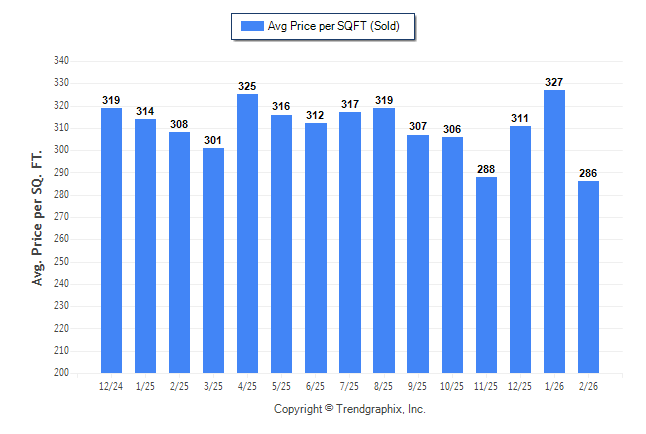 February 2026 Average Sold Price per Square Footage was Neutral**