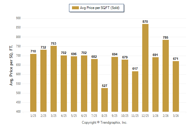 March 2026 Average Sold Price per Square Footage was Neutral**