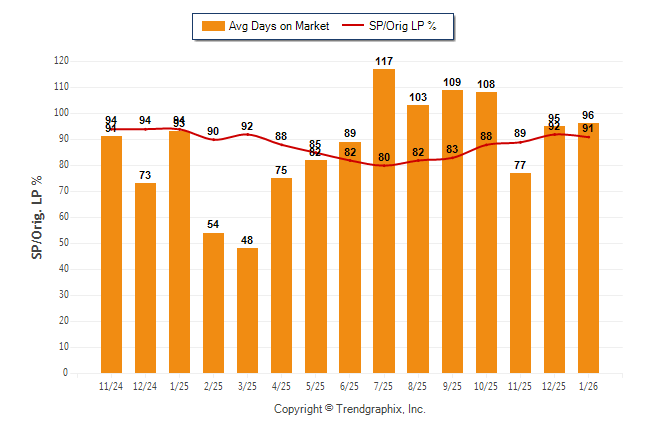 January 2026 Average Days on Market trend Remains Steady and Sold/Original List Price Ratio Remains Steady**