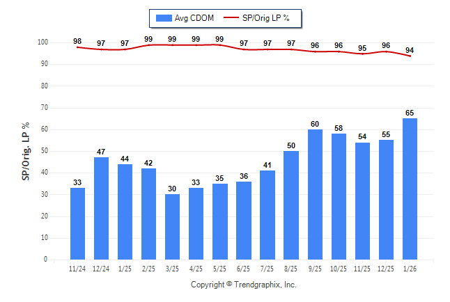 January 2026 Average Continuous Days on Market trend was Rising and Sold/Original List Price Ratio was Falling**