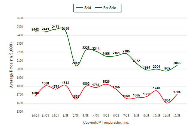 December 2025 Average For Sale Price was Neutral and Average Sold Price was Neutral**