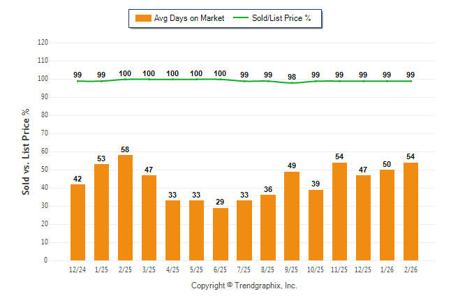 February 2026 Average Days on Market trend was Rising and Sold/List Price Ratio Remains Steady**