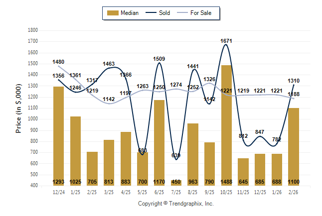 February 2026 Median Price was Neutral, Avg. For Sale Price was Depreciating, and Avg. Sold Price was Neutral**