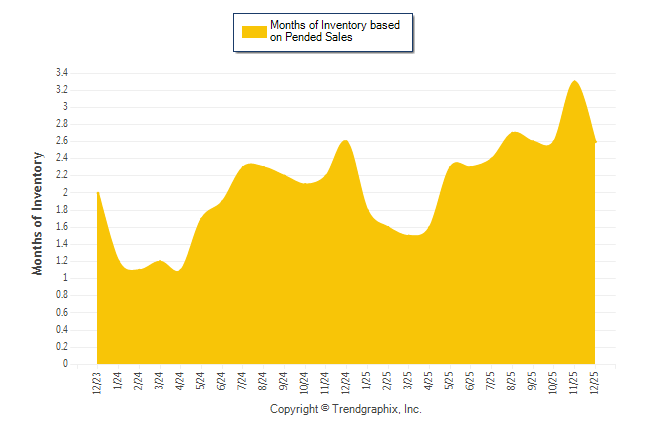 Curnt vs. Same 12 Months 1 Yr Ago: Months of Inventory (Pended Sales)