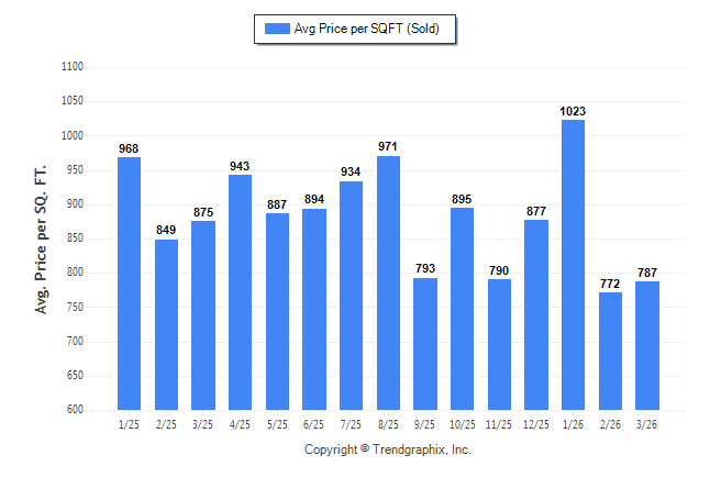 March 2026 Average Sold Price per Square Footage was Neutral**